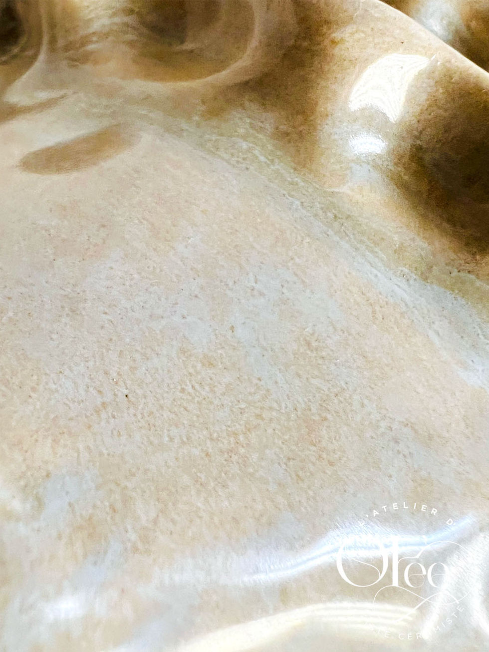 Après quinze jours de séchage au rythme de l'hiver vendéen, la première cuisson biscuit à 1050° a révélé sa structure. Cette odeur de terre cuite qui s'échappe du four... elle me ramène toujours à mes premiers pas dans cet univers. Puis l'émail Oyster Shell, cette nacre liquide que j'ai appliquée au pinceau, caresse après caresse. La seconde cuisson à 1000° lui a donné cette brillance si particulière, ce toucher lisse et chaud qui surprend toujours.