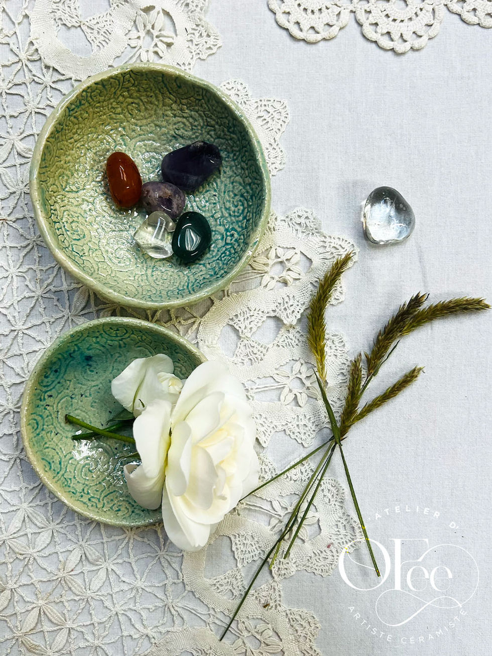 Quand mes doigts gravent la dentelle dans l'argile, naissent deux âmes jumelles aux reflets de jade...