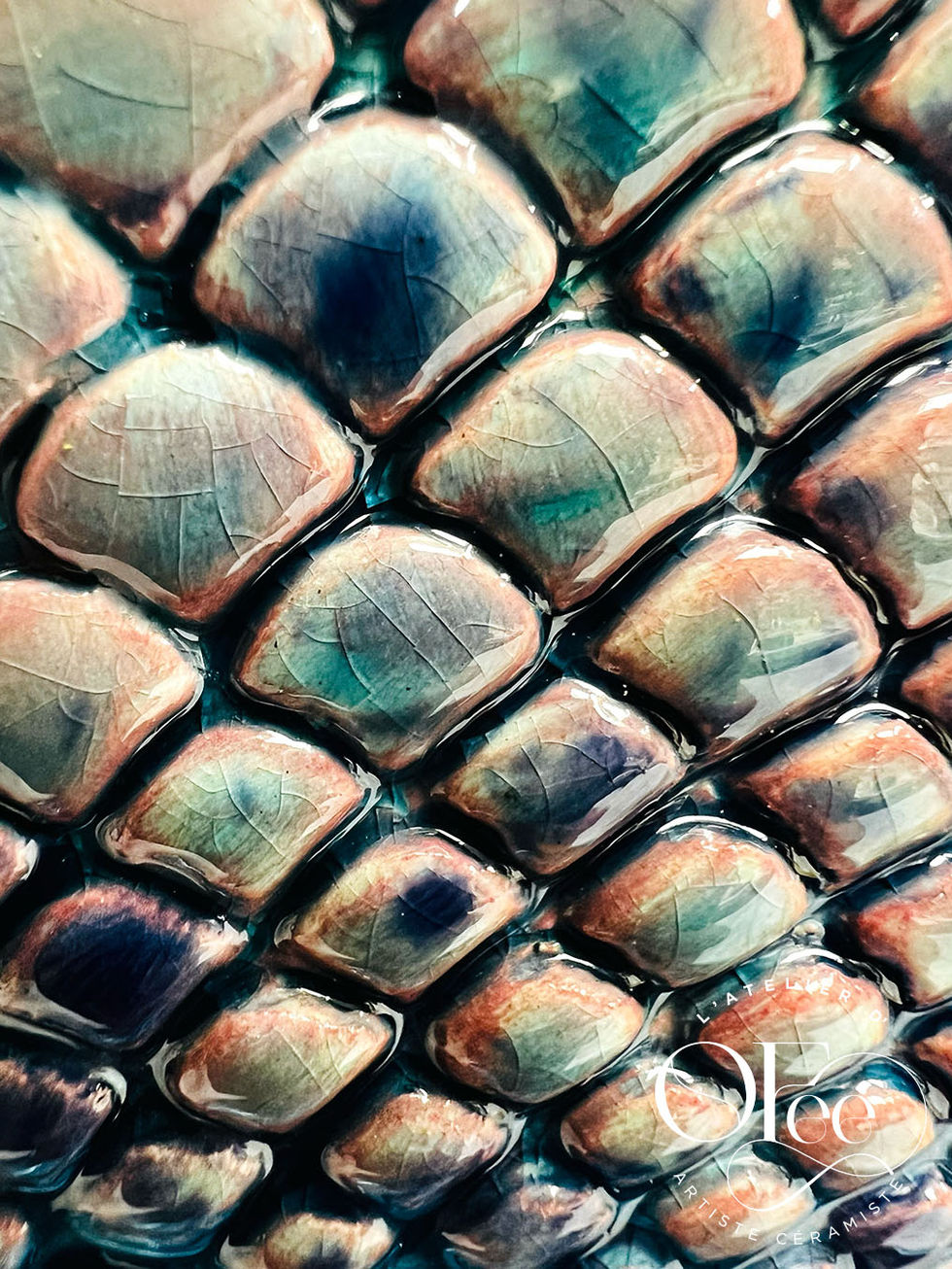 • Sensation : Fraîcheur de la céramique, relief tactile des écailles